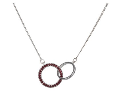 Stříbrné náušnice s českým granátem, rhodiované - kruh