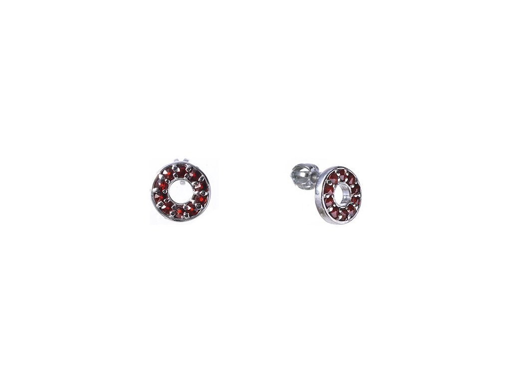 Silver earrings with czech garnet, rhodium plated - circle