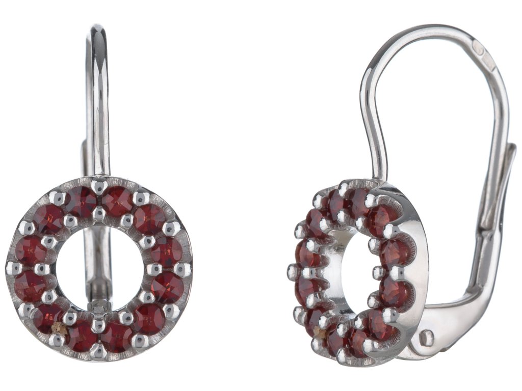 Silver earrings with czech garnet, rhodium plated - circle