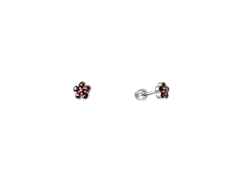 Silver earrings with czech garnet, rhodium plated - flower