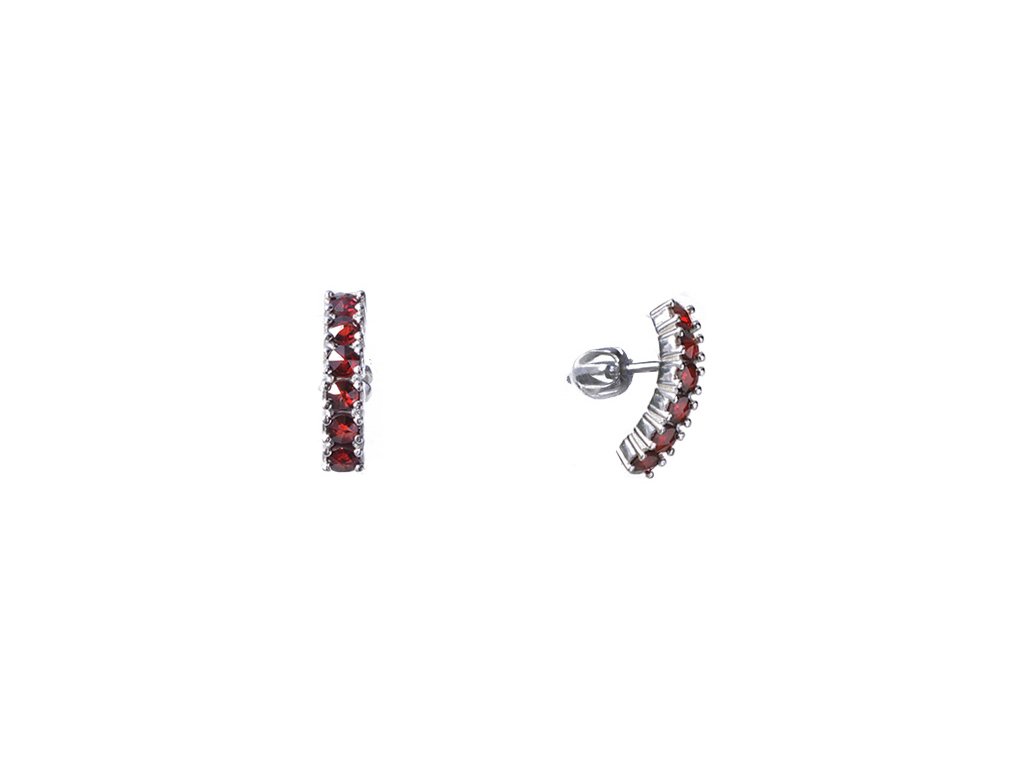 Stříbrné náušnice s českým granátem, rhodiované - linka