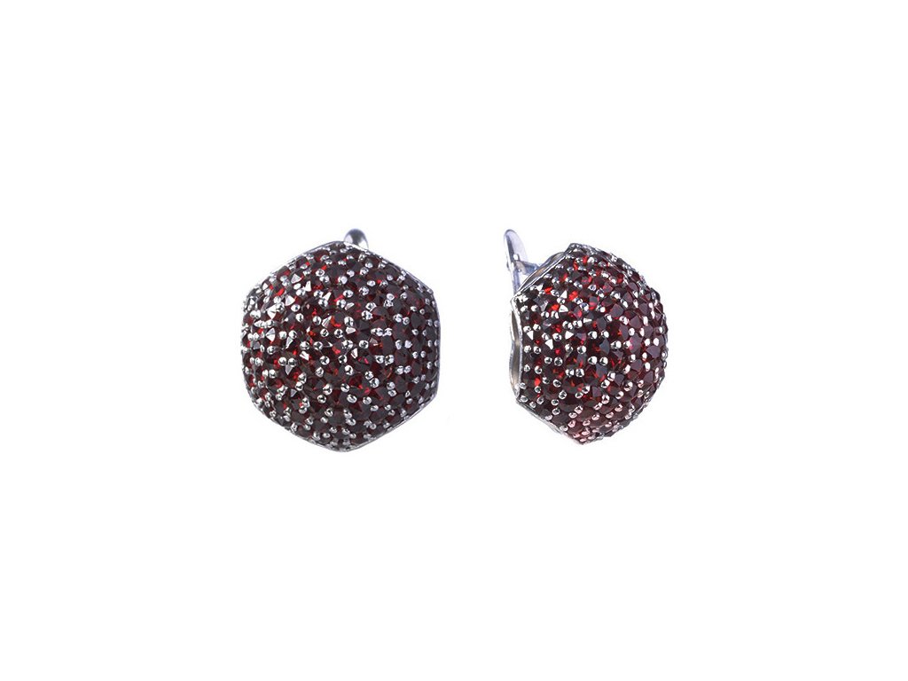 Stříbrné náušnice s českým granátem, rhodiované - malina