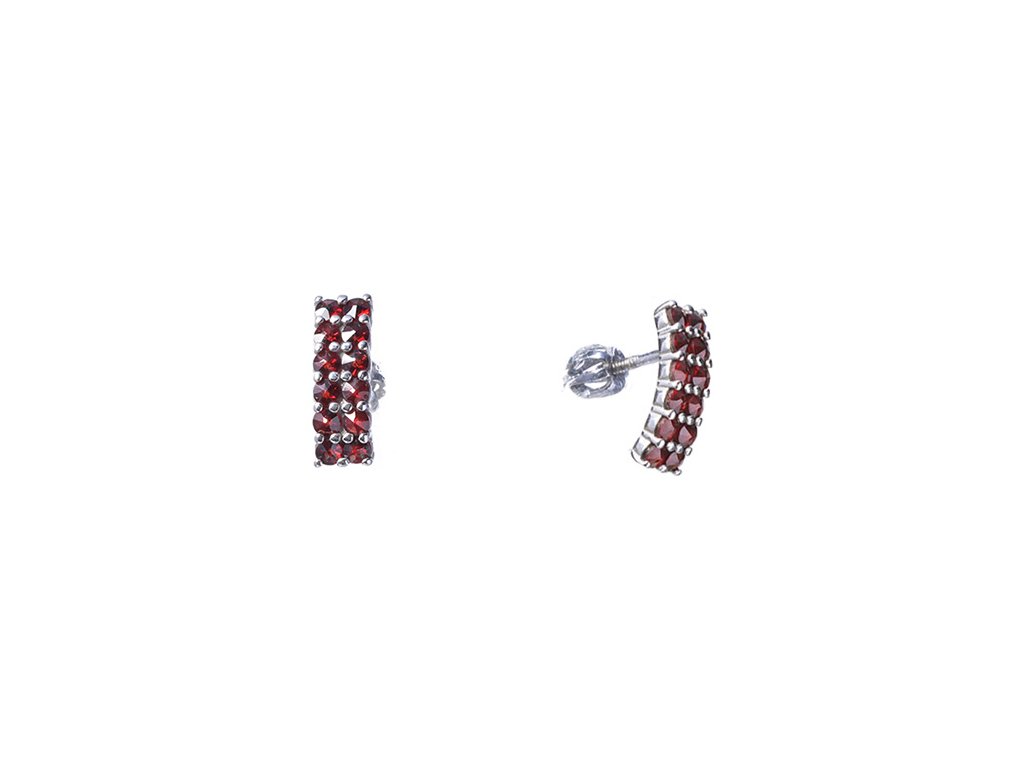 Tyto elegantní náušnice jsou vyrobeny ze stříbra (Ag 925/1000) a zušlechtěny rhodiováním. Jsou zdobeny českým granátem. Náušnice mají motiv obdélník o velikosti 19x4 mm. V nabídce jsou i varianty s jiným zapínáním.