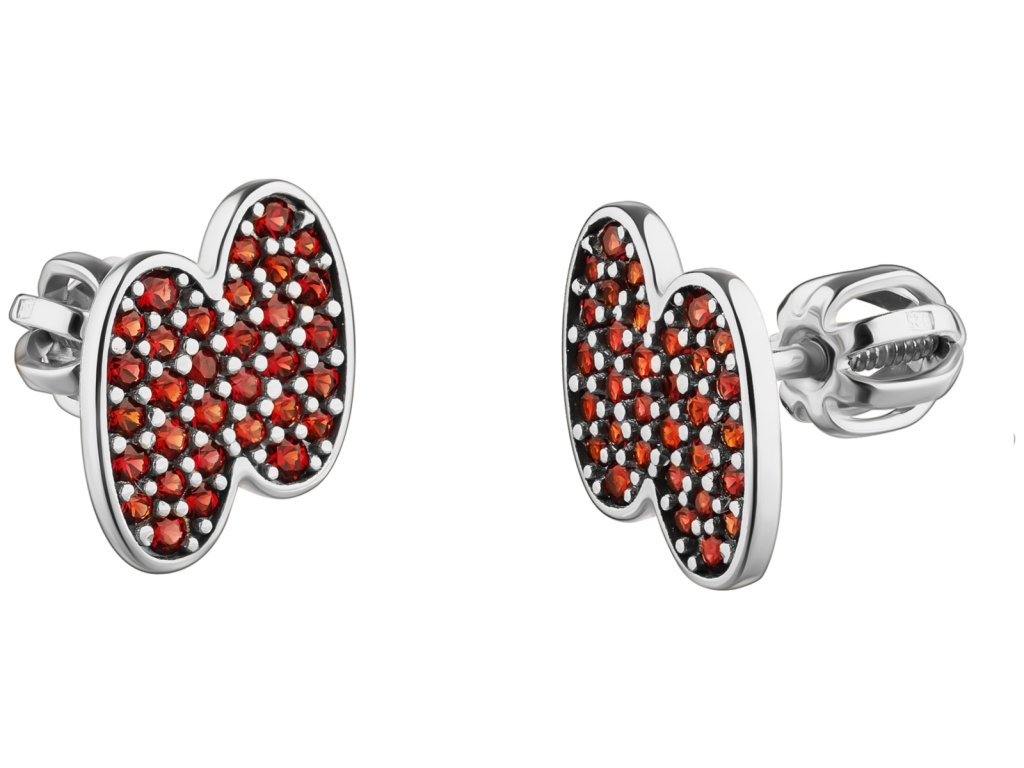 Silver earrings with czech garnet, rhodium plated - oval