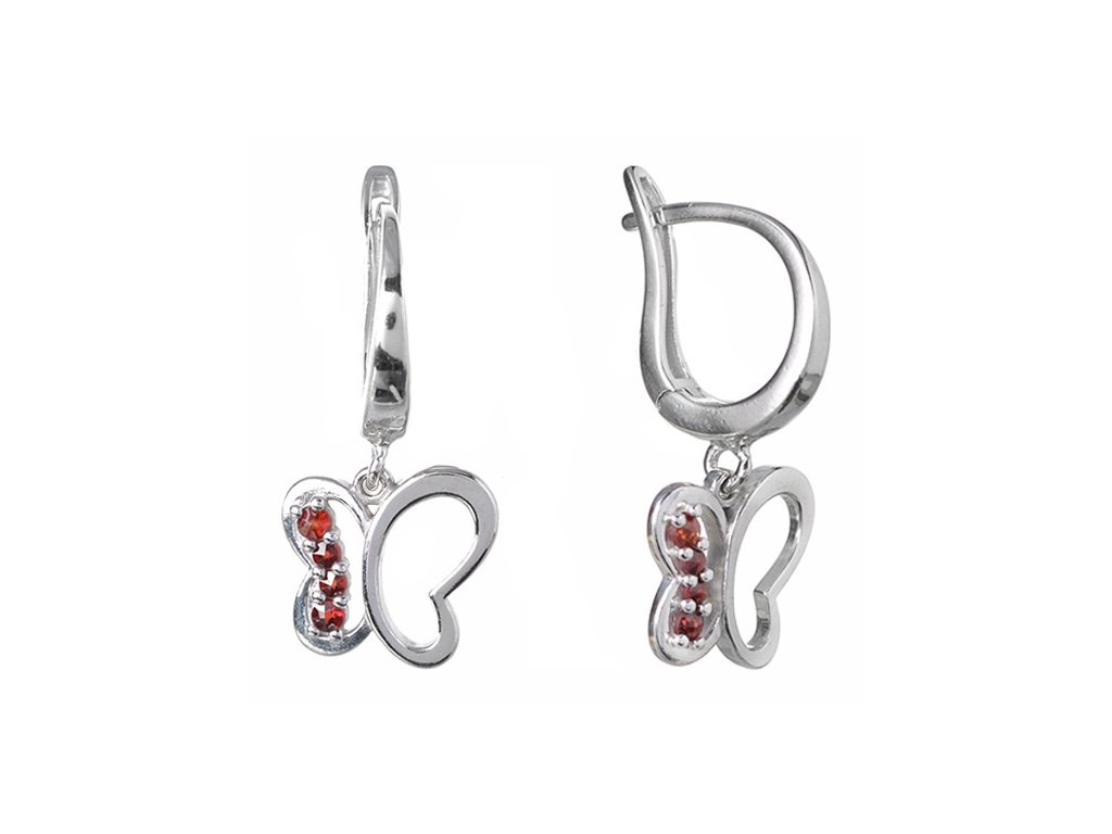 Silver earrings with czech garnet, rhodium plated, animal - butterfly
