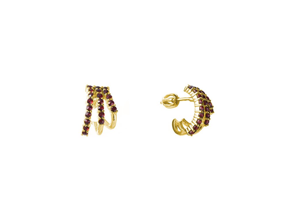 Tyto elegantní náušnice jsou vyrobeny ze stříbra (Ag 925/1000) a zušlechtěny zlacením. Jsou zdobeny českým granátem. Náušnice mají motiv o velikosti 15x9 mm. V nabídce jsou i varianty s jiným zapínáním.
