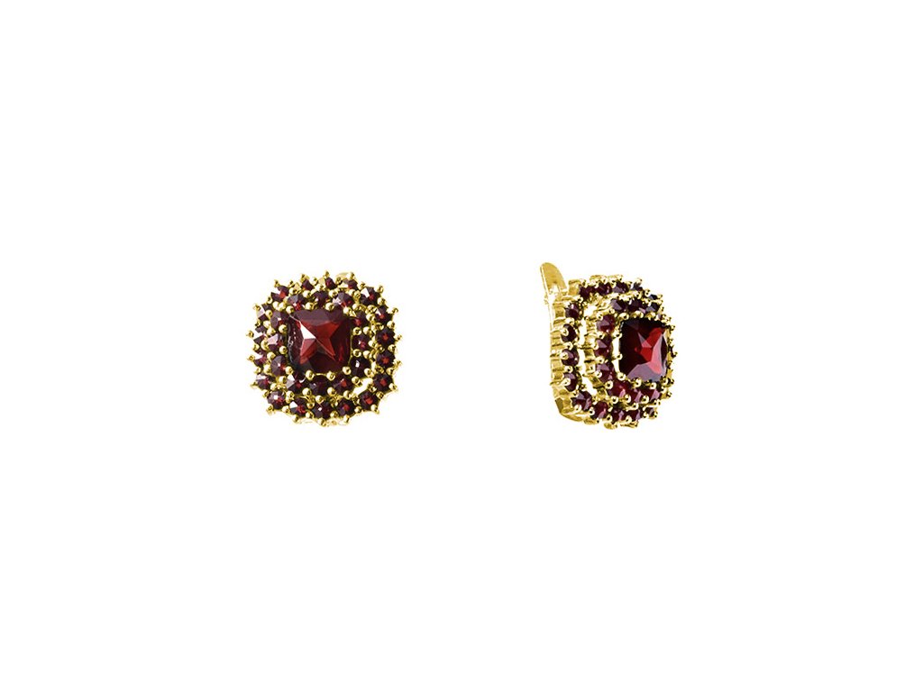 Silver earrings with czech garnet, gold plated - square