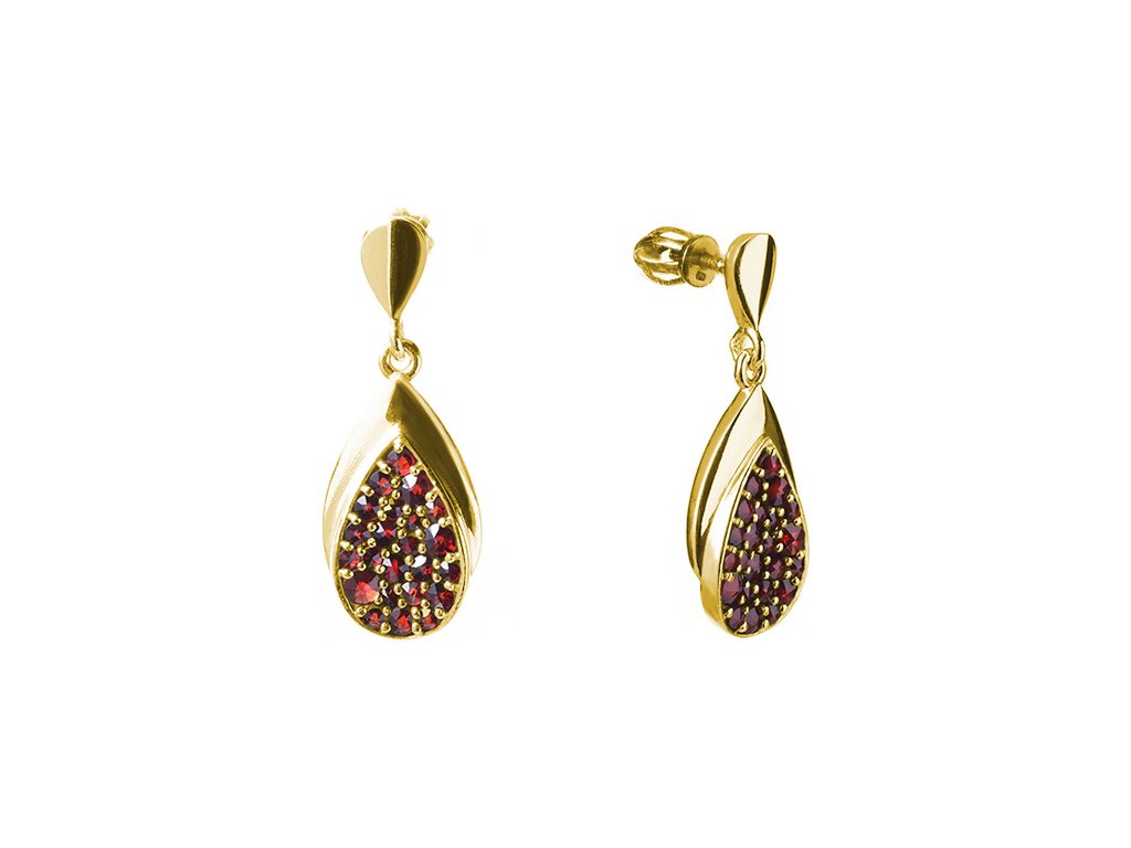 Stříbrné náušnice s českým granátem, zlacené - kapka
