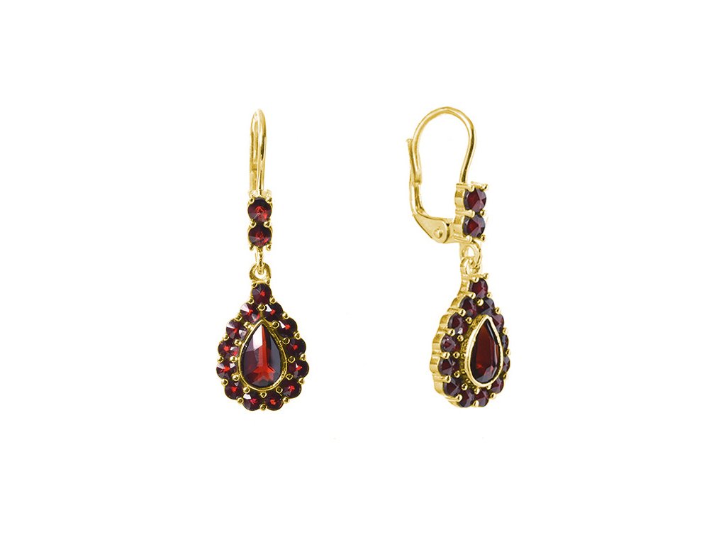 Silver earrings with czech garnet, gold plated - drop