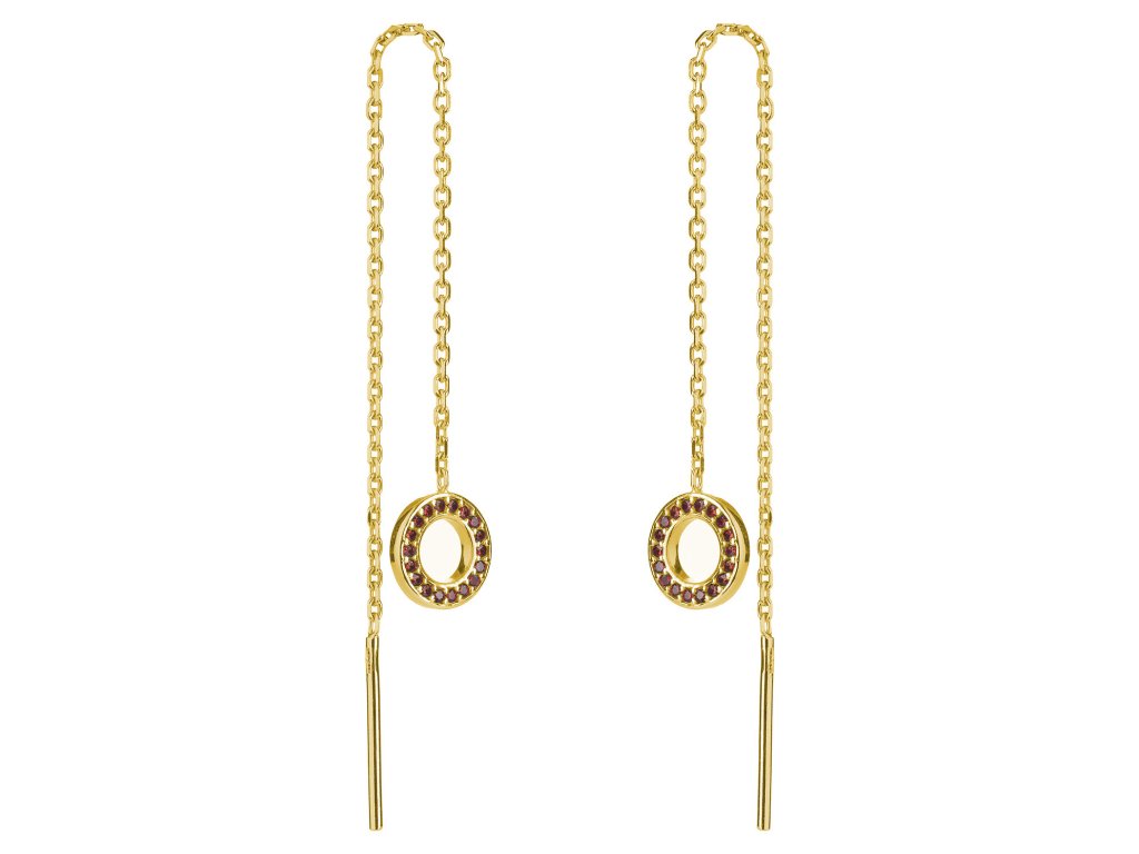 Silver earrings with czech garnet, gold plated - circle