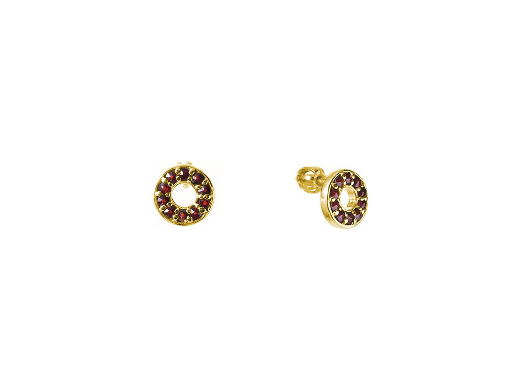 Silver earrings with czech garnet, gold plated - circle