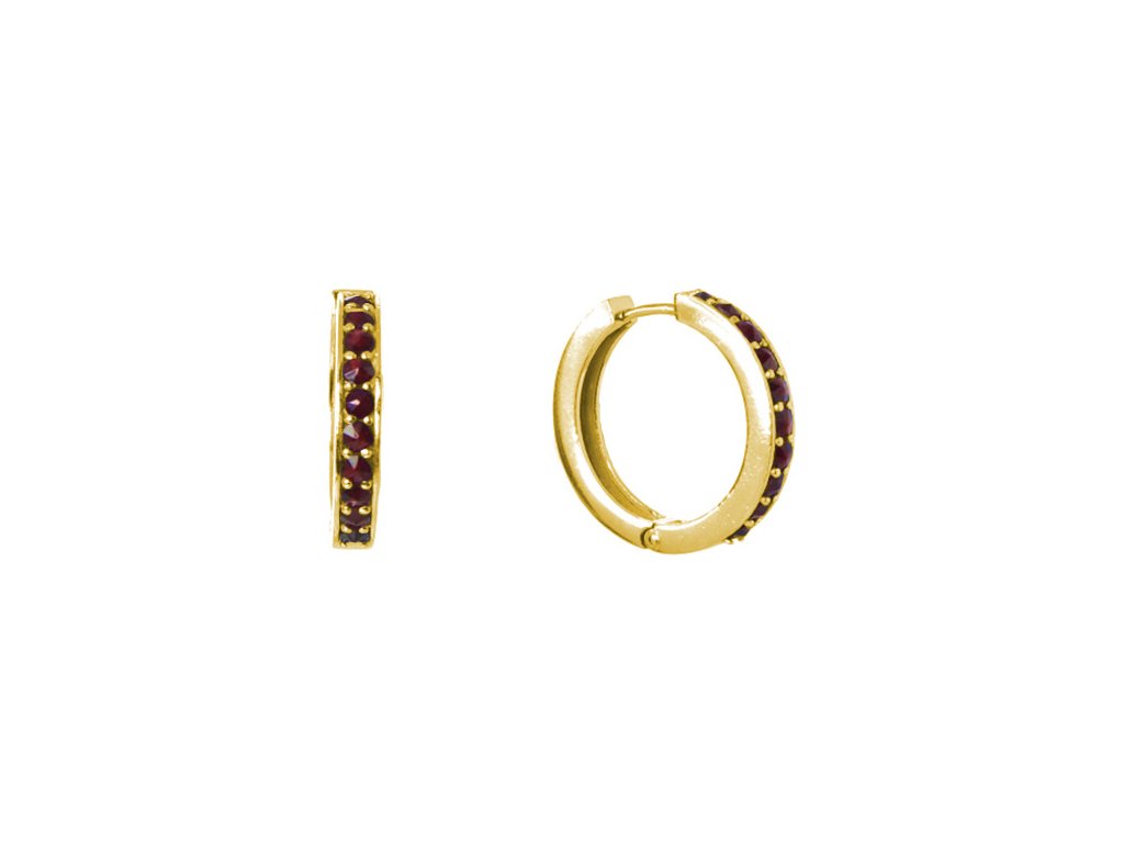 Stříbrné náušnice s českým granátem, zlacené - kruh