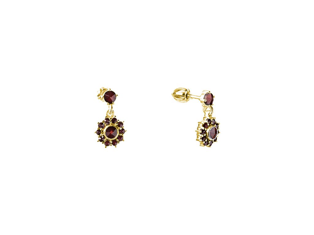 Silver earrings with czech garnet, gold plated - flower