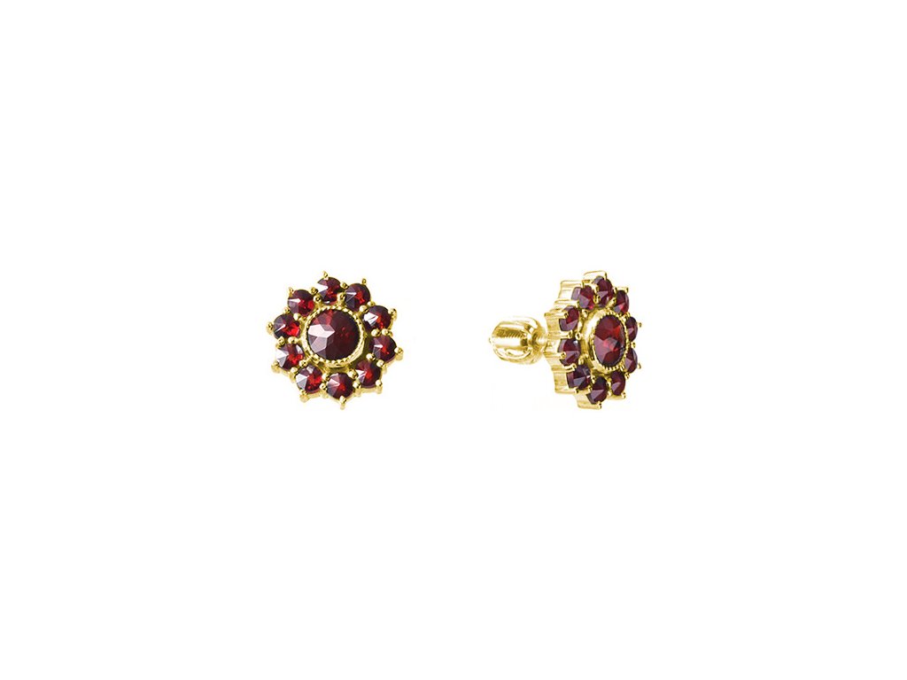 Silver earrings with czech garnet, gold plated - flower