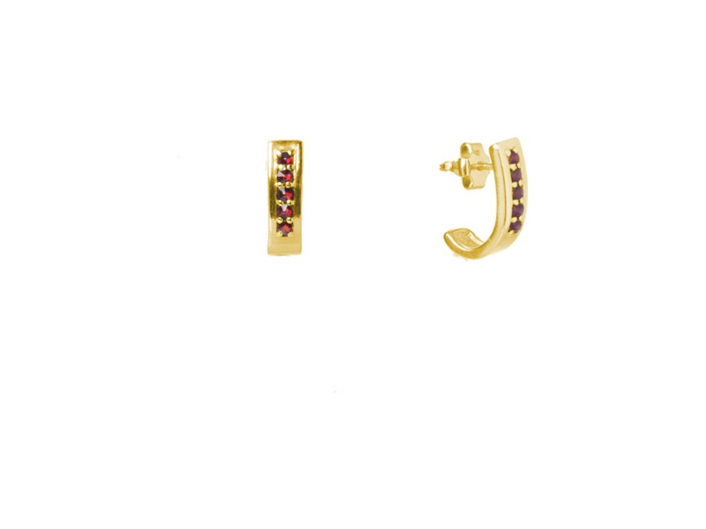 Silver earrings with czech garnet, gold plated - line