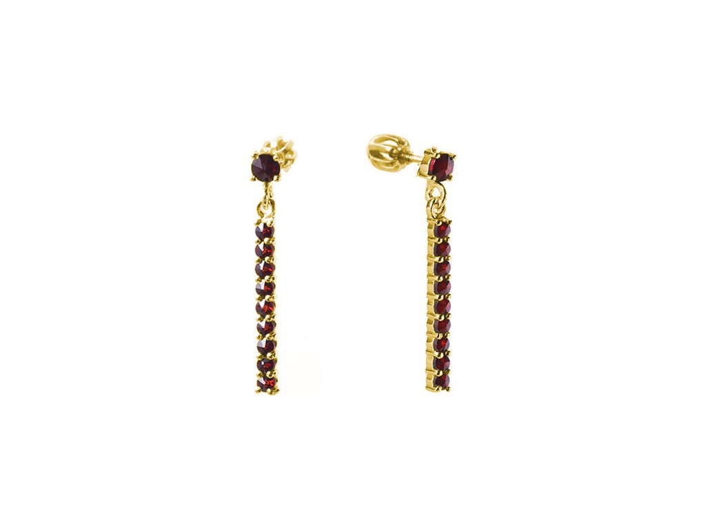 Silver earrings with czech garnet, gold plated - line