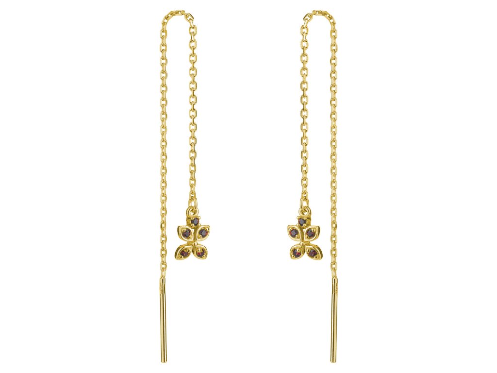 Tyto elegantní náušnice jsou vyrobeny ze stříbra (Ag 925/1000) a zušlechtěny zlacením. Jsou zdobeny českým granátem. Náušnice mají motiv lístek o velikosti 8x6 mm.