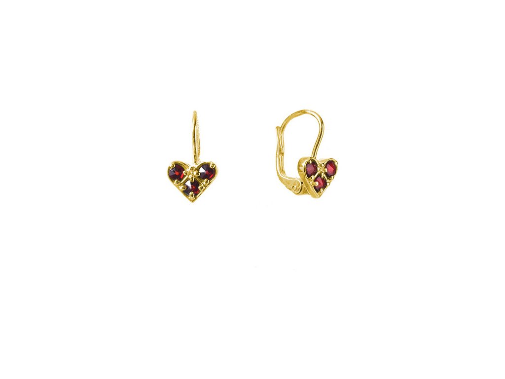 Silver earrings with czech garnet, gold plated - heart