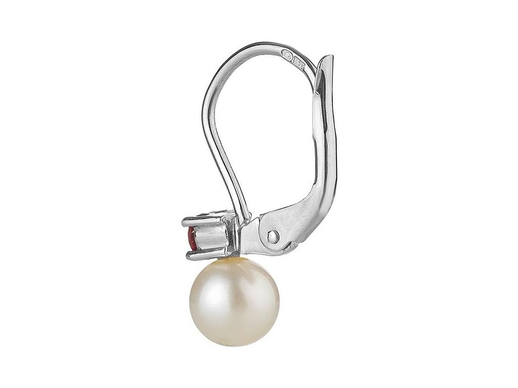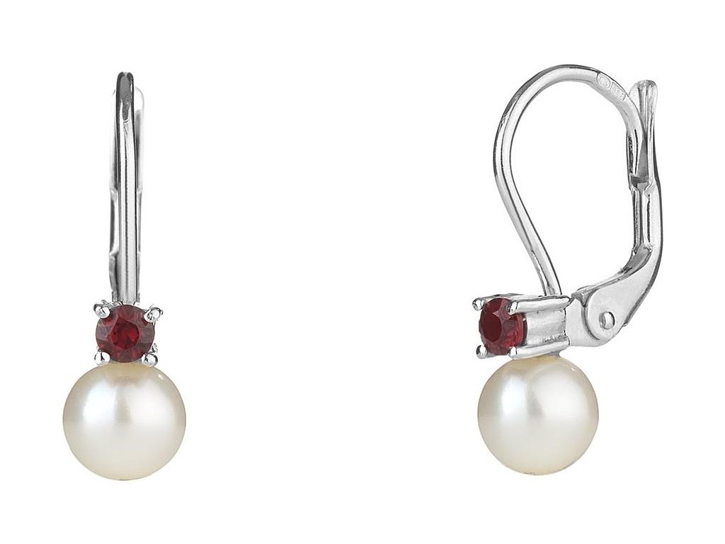 Silver earrings with czech garnet and pearl, rhodium plated