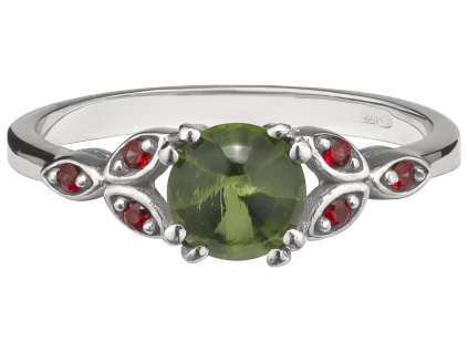 Silver earrings with czech garnet and moldavite, rhodium plated