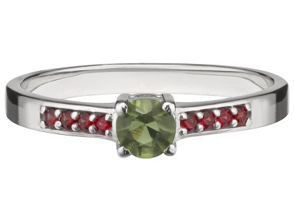 Stříbrné náušnice s českým granátem a vltavínem, rhodiované - linka