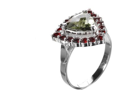 Silver earrings with czech garnet and moldavite, rhodium plated - triangle
