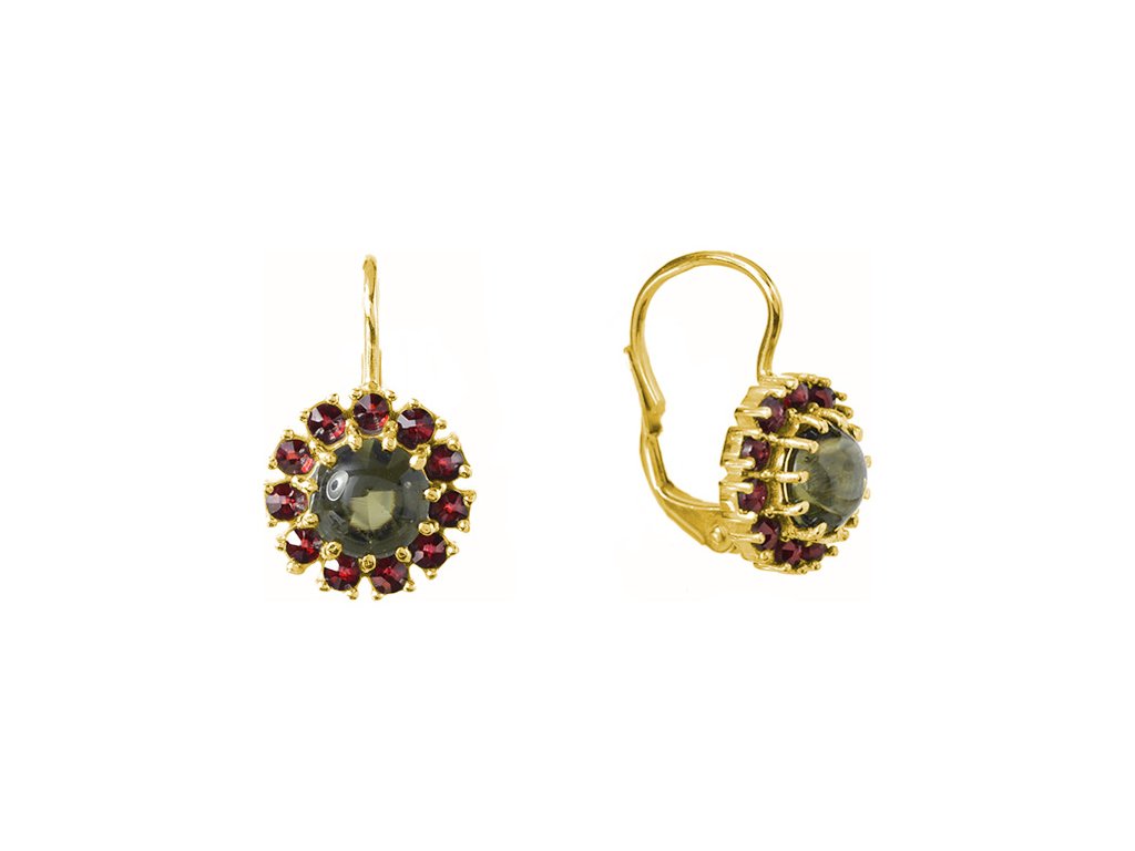 Silver earrings with czech garnet and moldavite, gold plated - flower