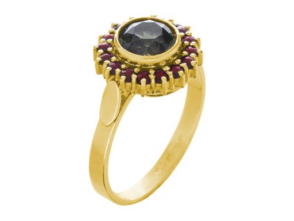 Tyto stylové náušnice jsou vyrobeny ze stříbra (Ag 925/1000) a zušlechtěny zlacením. Jsou zdobeny českým granátem a vltavínem. Šperku dominuje středový vltavín. Náušnice mají motiv květina o velikosti 12x12 mm. V nabídce jsou i varianty s jiným zapínáním.