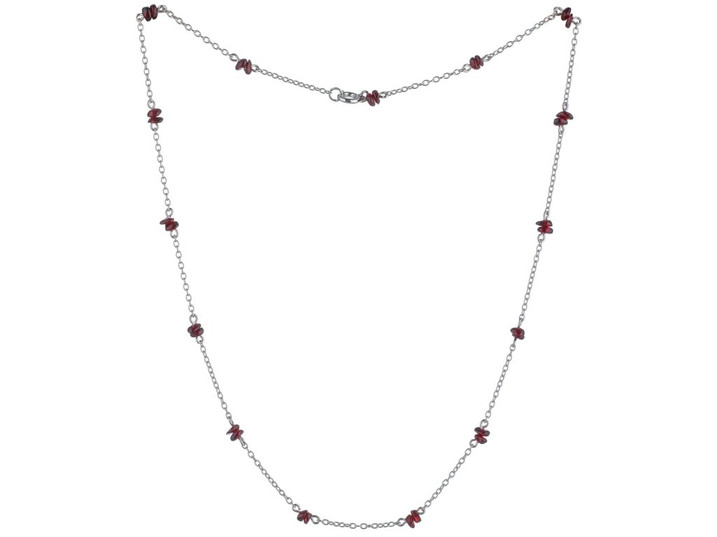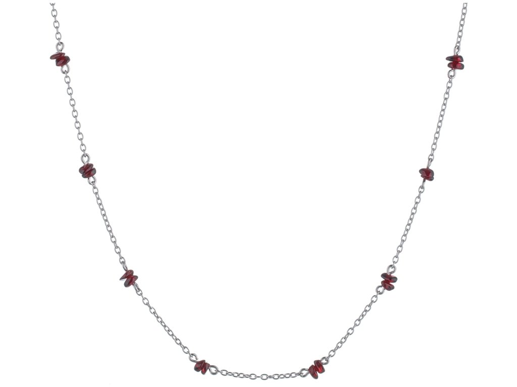 Silver necklace with czech garnet, rhodium plated