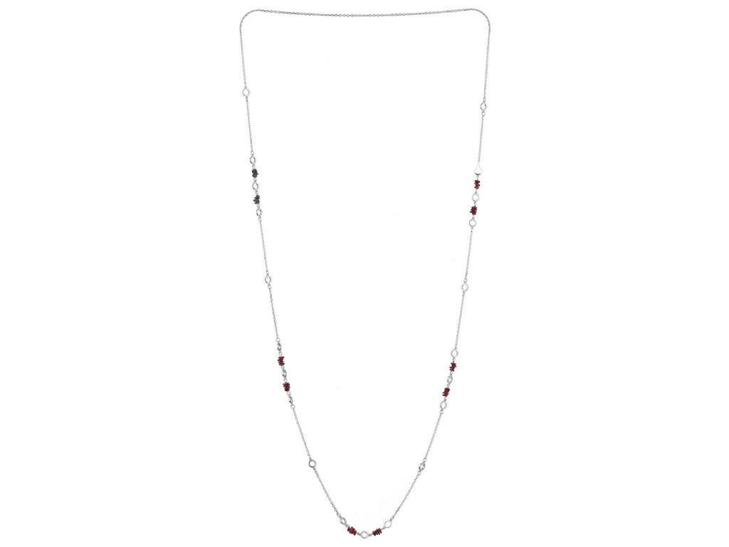 Silver necklace with czech garnet, rhodium plated - ring