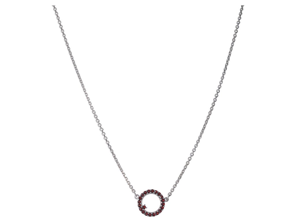 Stříbrný náhrdelník s českým granátem, rhodiovaný - kruh