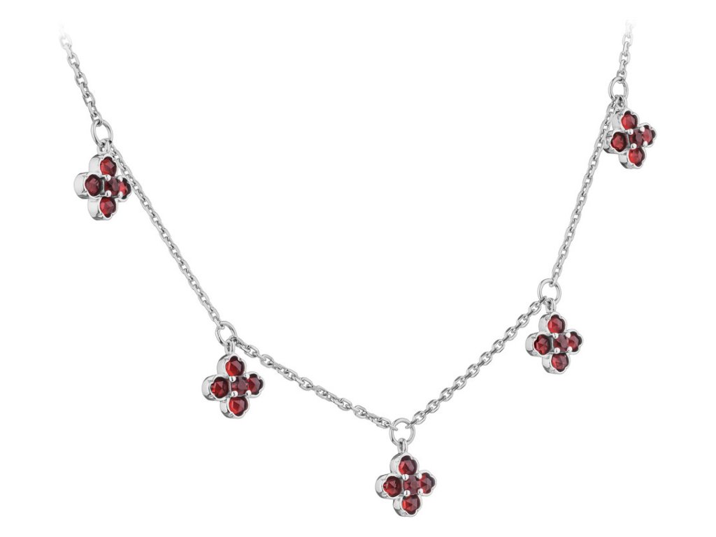 Stříbrný náhrdelník s českým granátem, rhodiovaný - květina