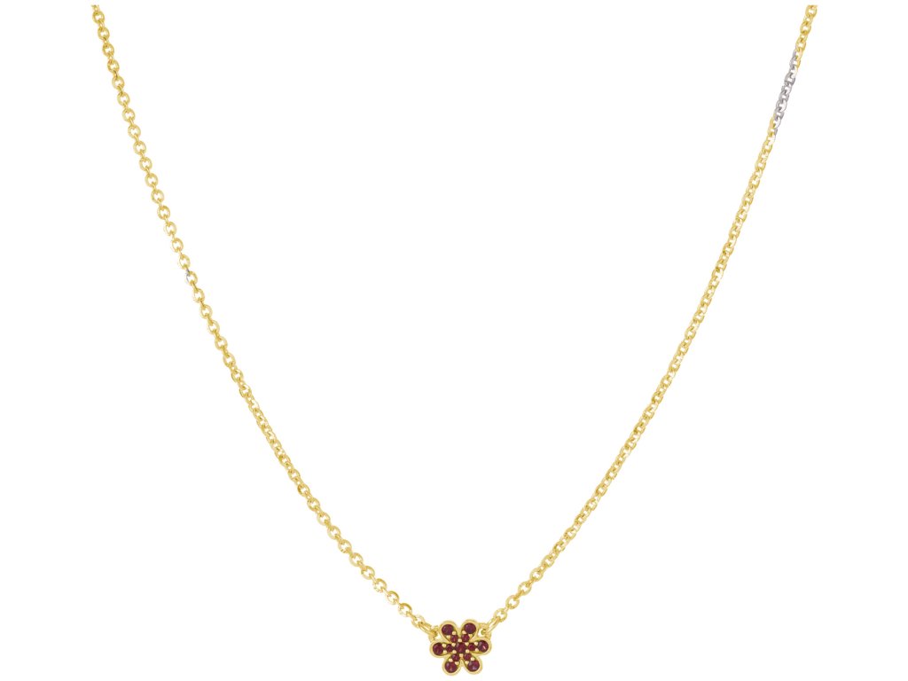 Silver necklace with czech garnet, gold plated - flower