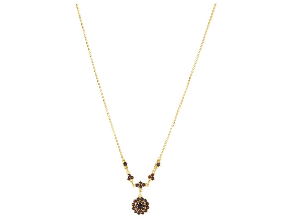 Stříbrný náhrdelník s českým granátem, zlacený - květina