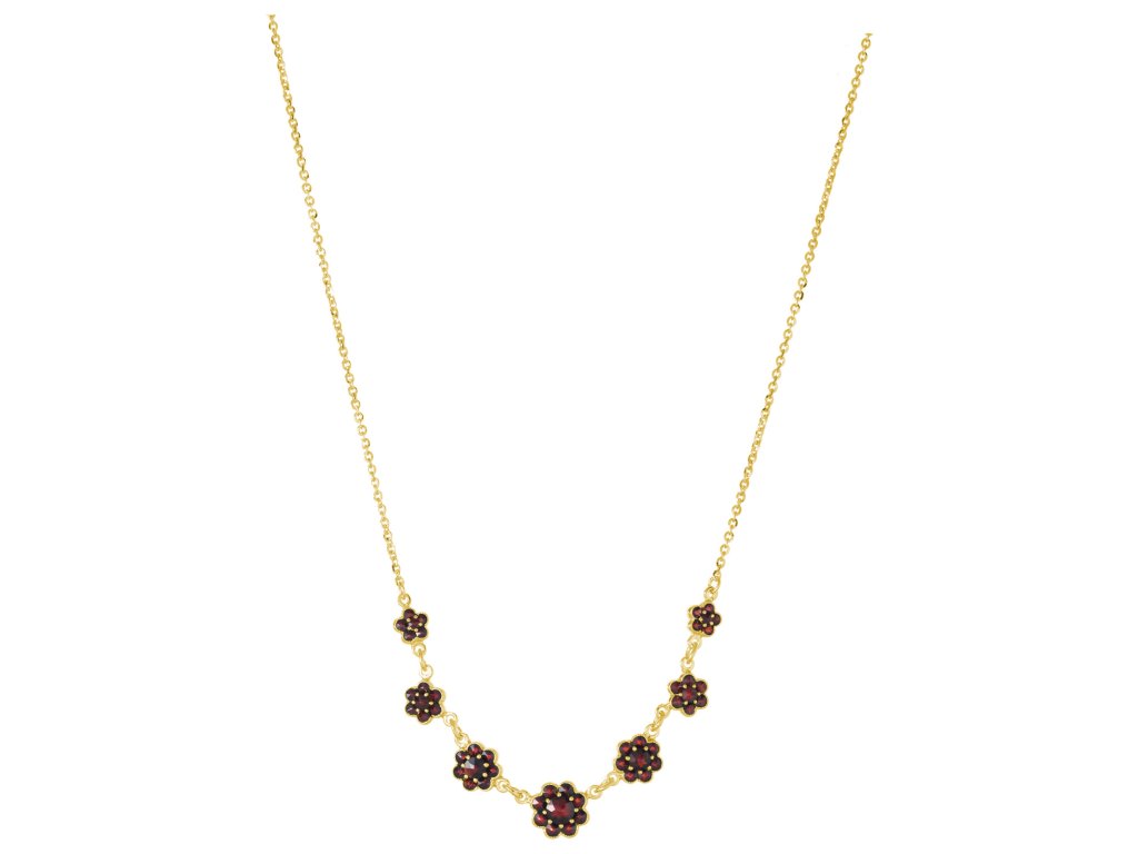 Silver necklace with czech garnet, gold plated - flower