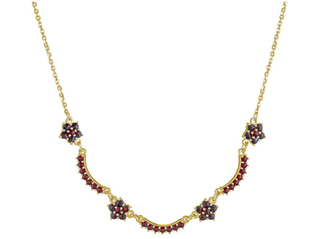 Stříbrný náhrdelník s českým granátem, zlacený - květina