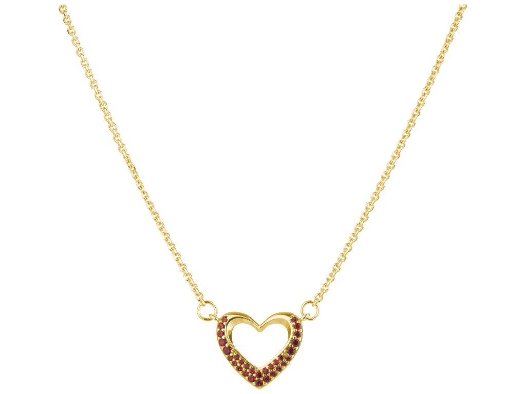 Silver necklace with czech garnet, gold plated - heart