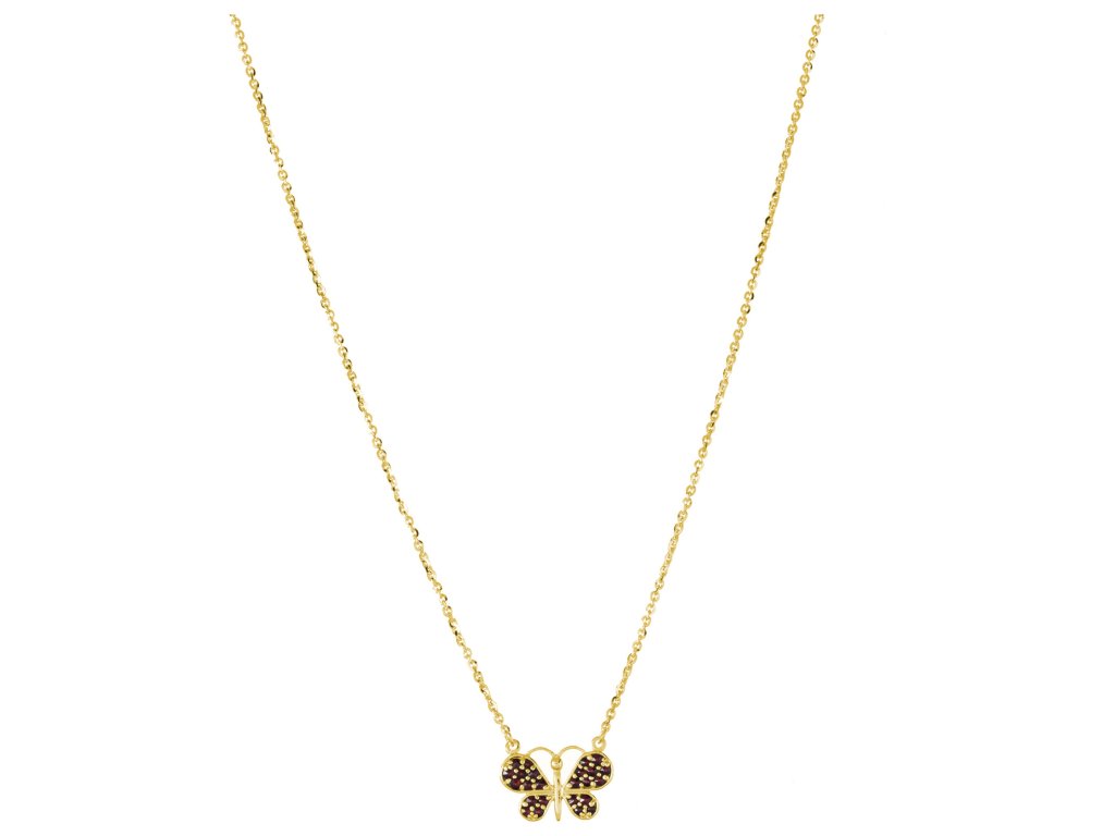 Silver necklace with czech garnet, gold plated, animal - butterfly