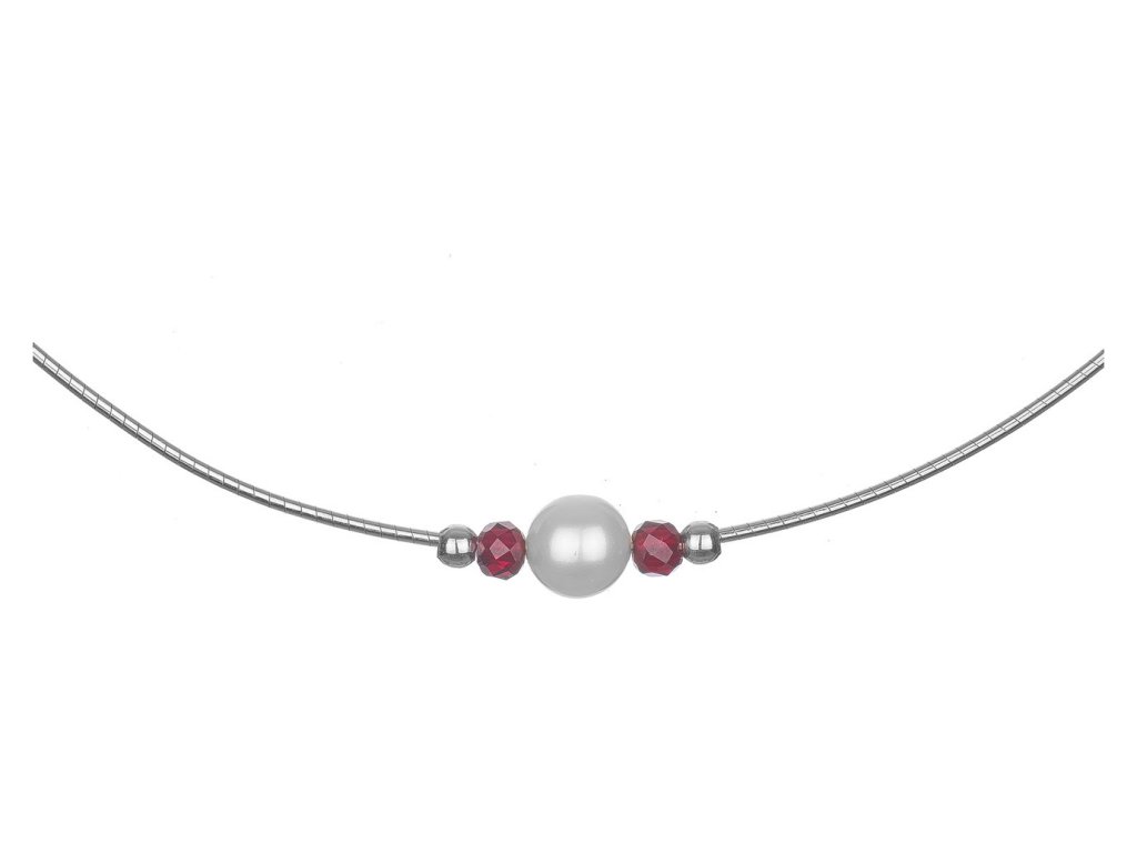 Silver necklace with czech garnet and pearl, rhodium plated