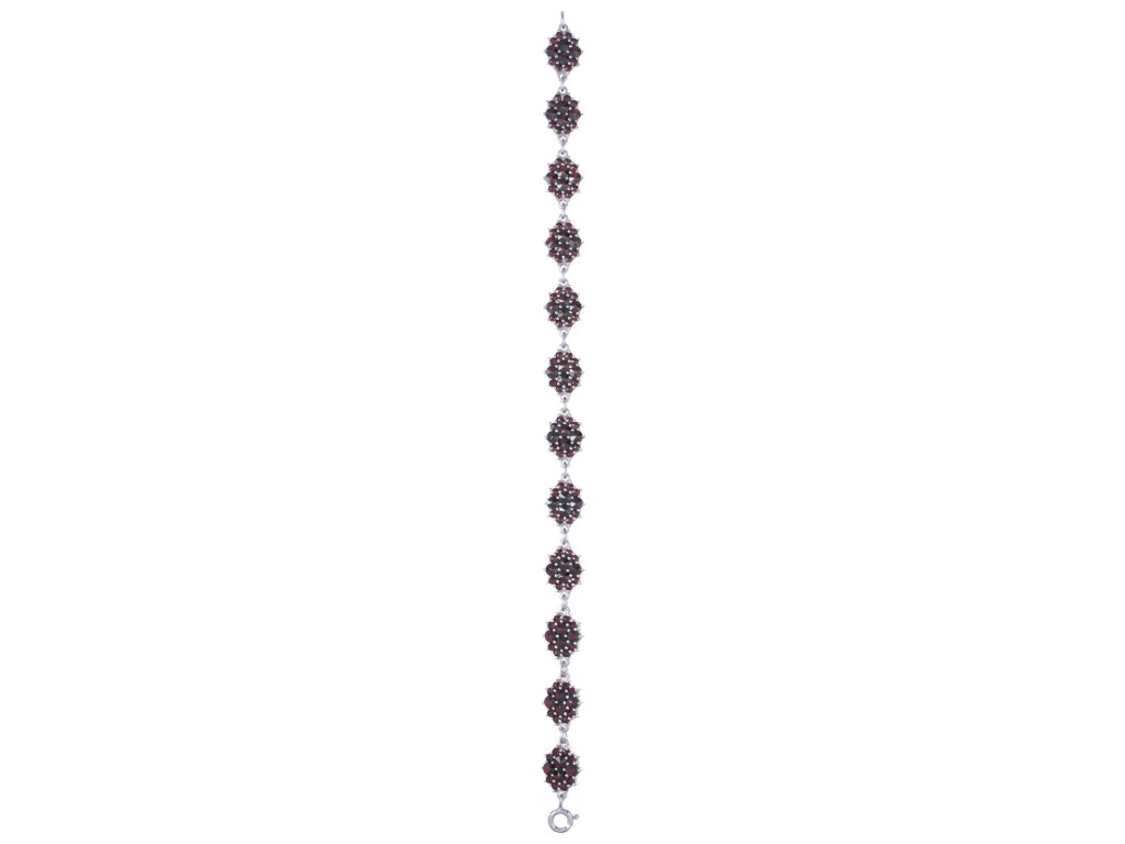 Stříbrný náramek s českým granátem, rhodiovaný - květina