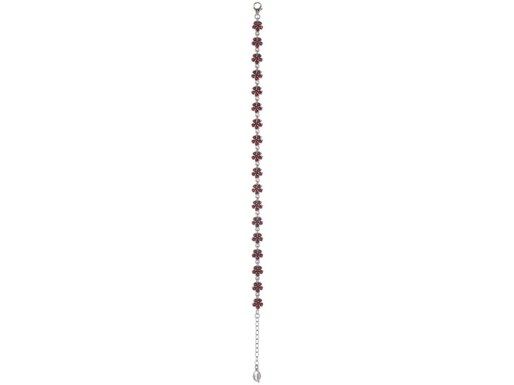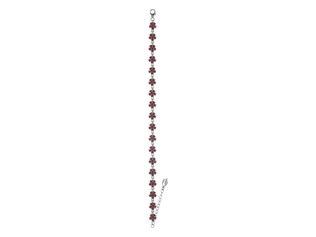 Silver bracelet with czech garnet, rhodium plated - flower