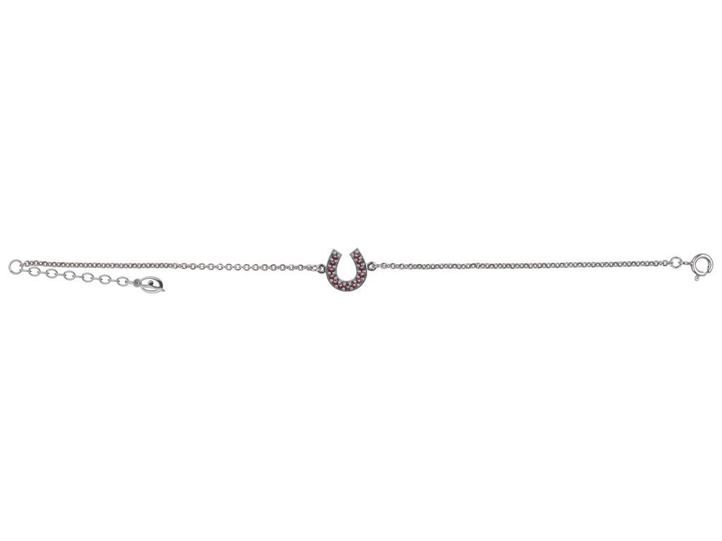 Silver bracelet with czech garnet, rhodium plated - horseshoe