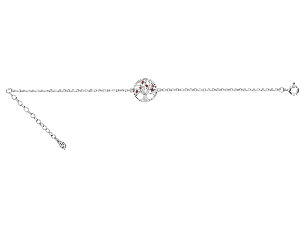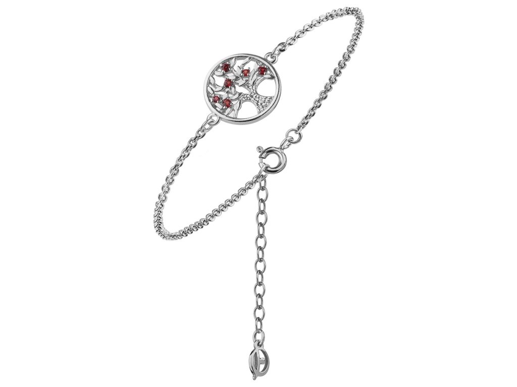 Stříbrný náramek s českým granátem, rhodiovaný - strom života