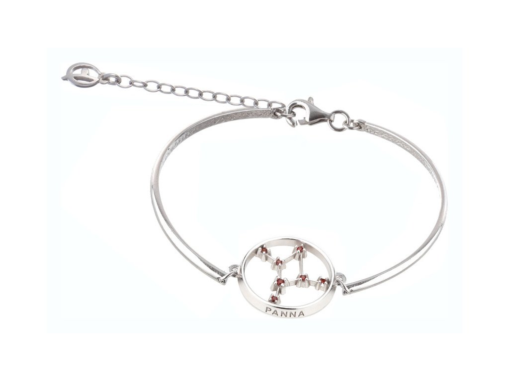 Silver bracelet with czech garnet, rhodium plated, zodiac sign - virgo