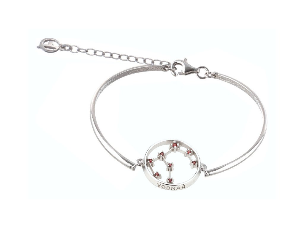 Silver bracelet with czech garnet, rhodium plated, zodiac sign - aquarius