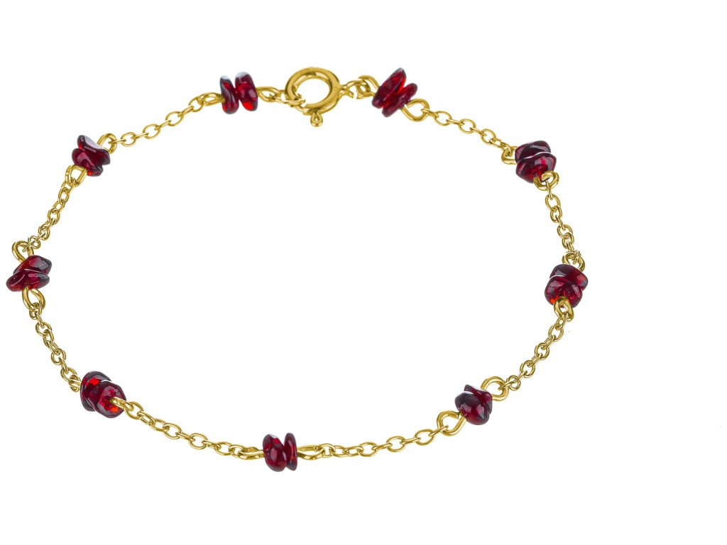 Tento stylový náramek je vyroben ze stříbra (Ag 925/1000) a zušlechtěn zlacením. Je zdoben českým granátem o velikosti 4 mm.