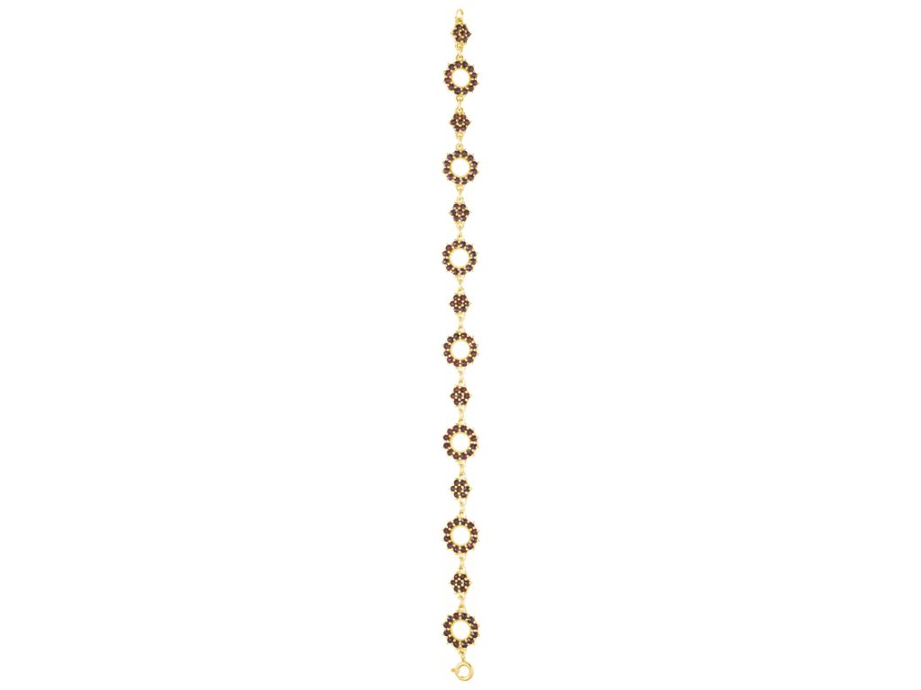 Stříbrný náramek s českým granátem, zlacený - kruh