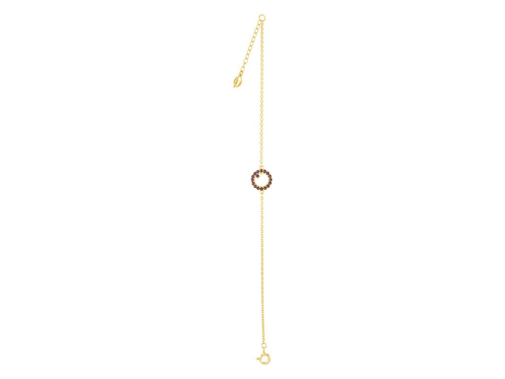 Stříbrný náramek s českým granátem, zlacený - kruh