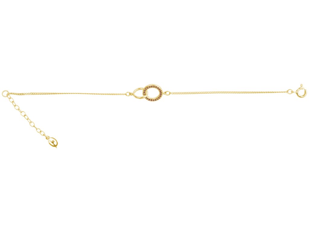 Silver bracelet with czech garnet, gold plated - circle