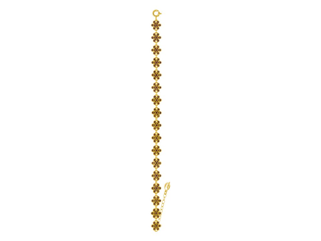 Tento stylový náramek je vyroben ze stříbra (Ag 925/1000) a zušlechtěn zlacením. Je zdoben českým granátem. Náramek má motiv květina o velikosti 8x8 mm.